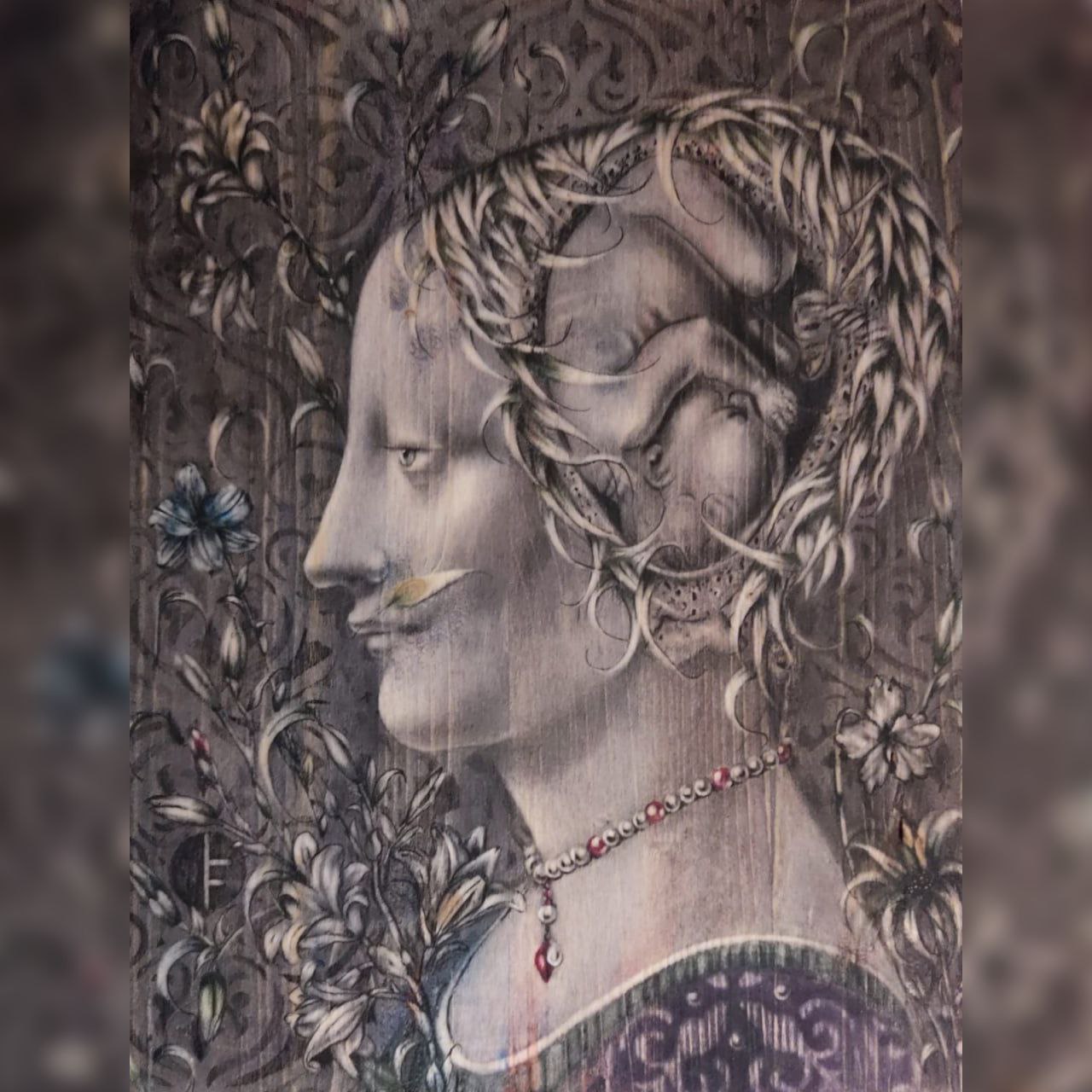 Tecnica: Tempera all'aceto e china su tavola. 2021