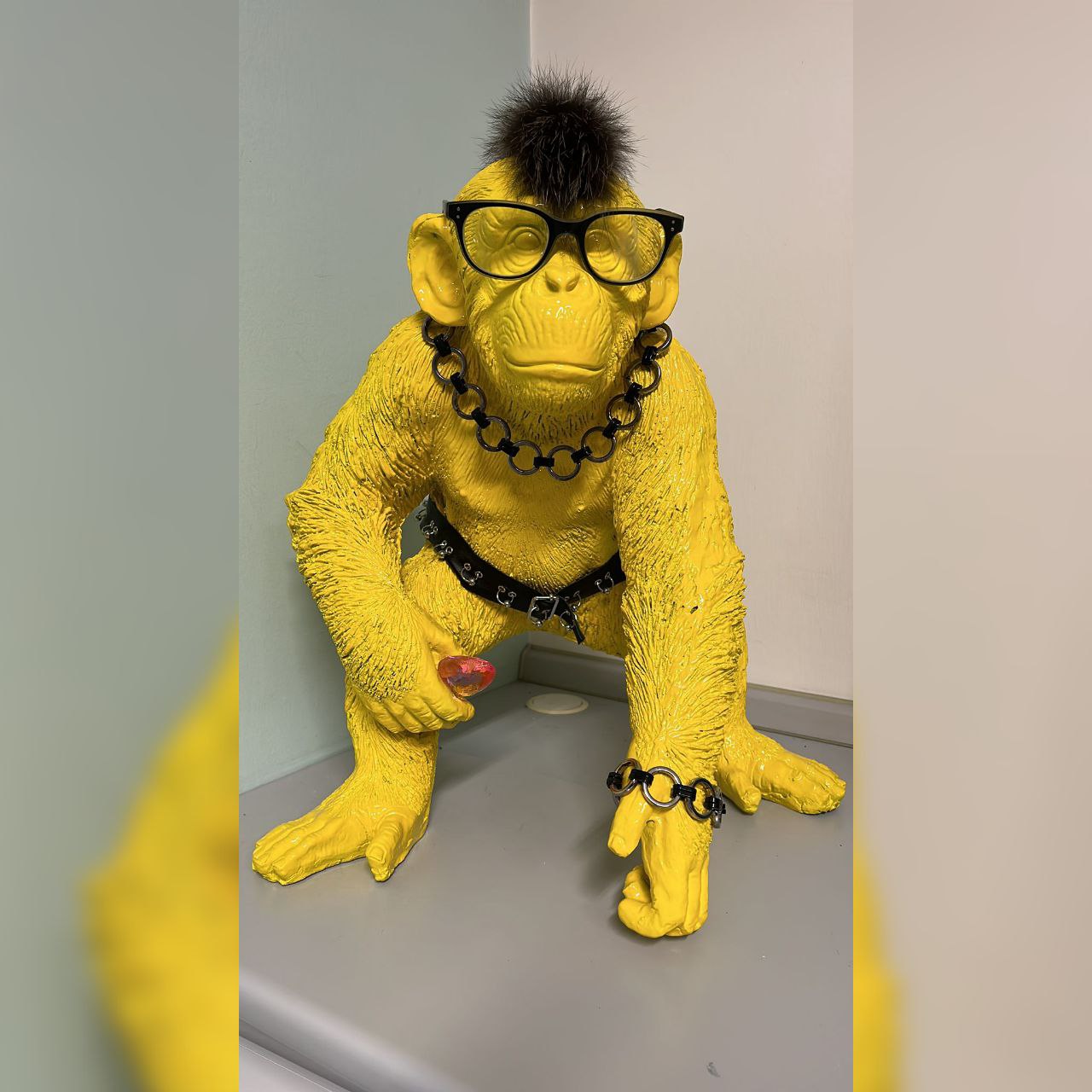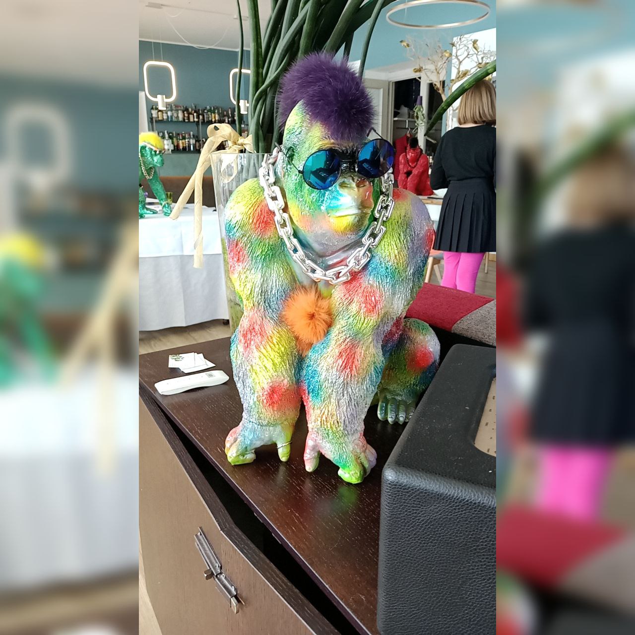 ferma, apprezza e acquista le mie opere ed è emozionante vedere l'approccio dei bambini che amano i miei grandi gorilla colorati, vestiti di inusitati accessori.